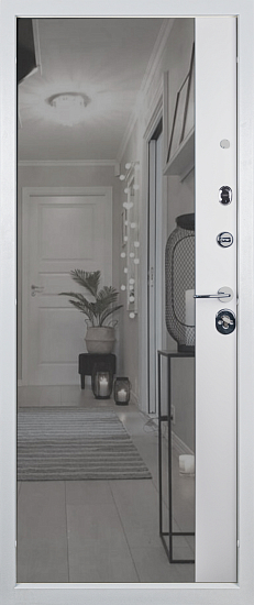 Белый матовый / 950x2030 / Левое Входные двери с зеркалом